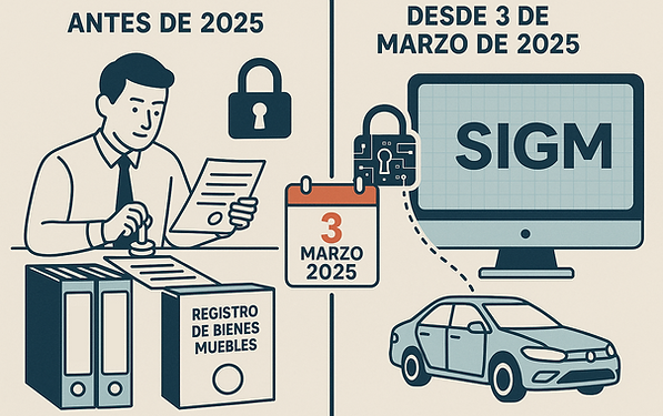 Antes de la entrada en funcionamiento del Sistema Informativo de Garantías Mobiliarias (SIGM) los embargos sobre bienes muebles, como vehículos, se inscribían en el Registro de Bienes Muebles o en el Registro de Propiedad Vehicular. El registrador verificaba la medida cautelar y, si era procedente, la anotaba. Sin embargo, desde el 3 de marzo de 2025, el SIGM es la única plataforma para publicitar garantías mobiliarias y medidas cautelares.
